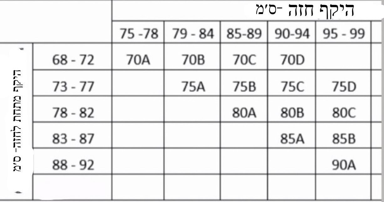 יש לציין היקף חזה בנקודה הבולטת ביותר